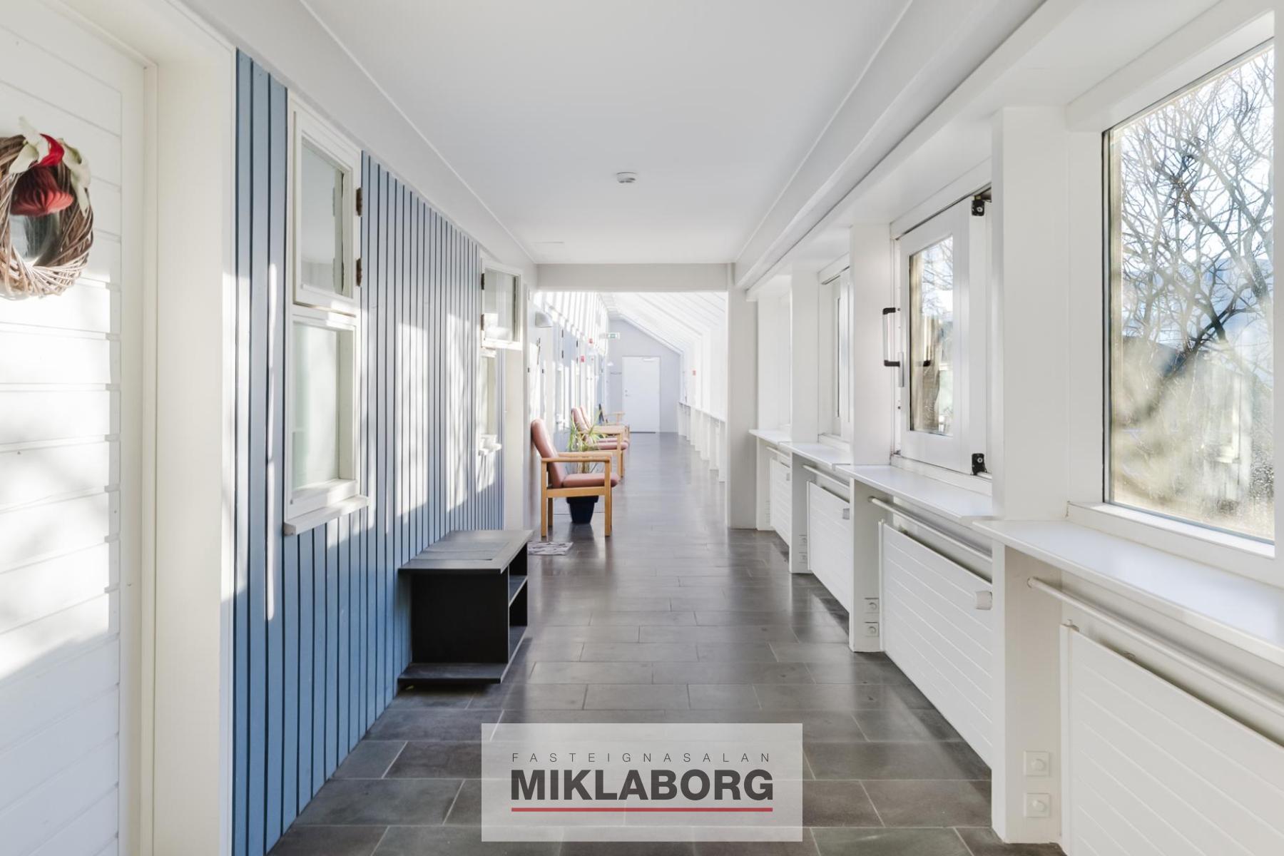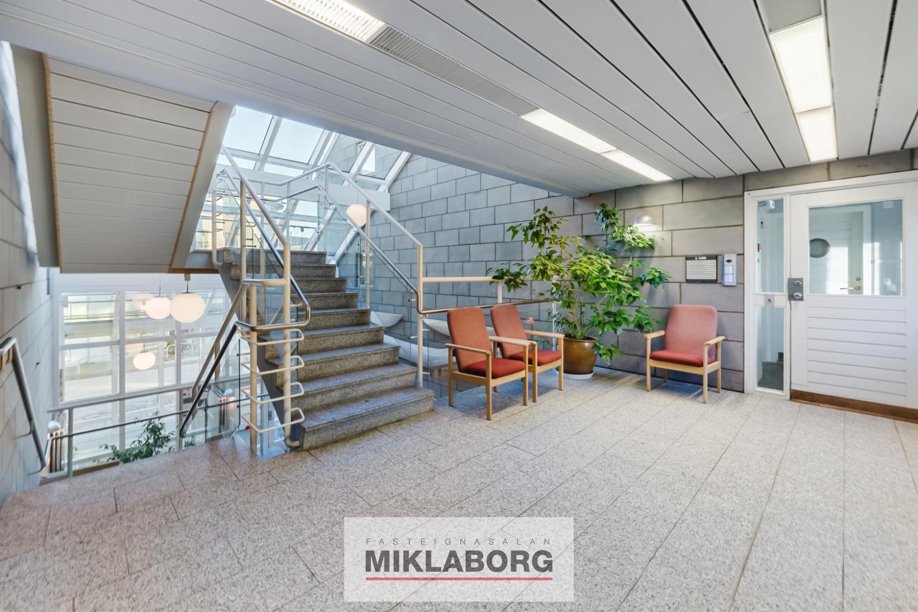 Mikil og björt sameign með glerþaki, sem nú er verið að endurnýja. Félagsmiðstöð fyrir eldri borgara og heilsugæsla í húsinu.