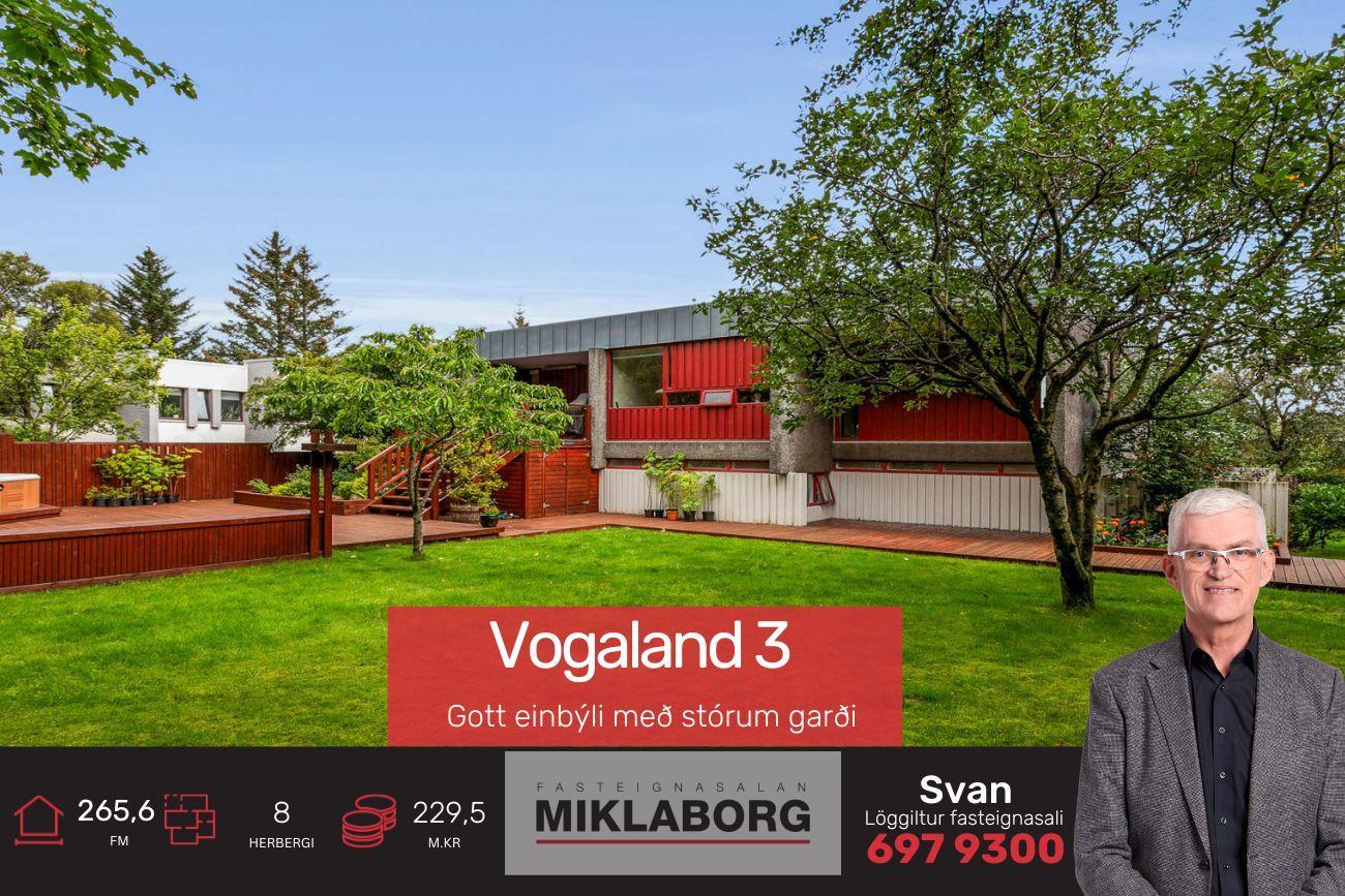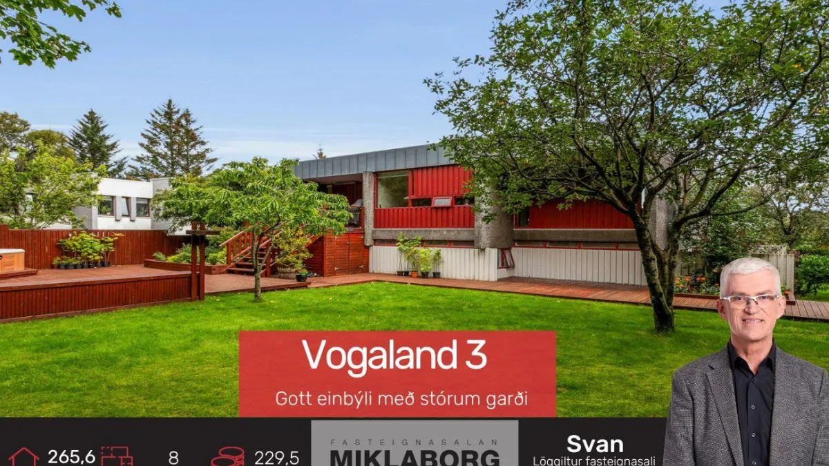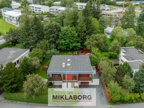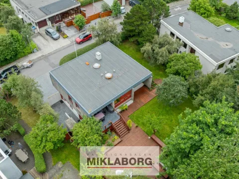 Miklaborg kynnir: Glæsilega hannað einbýlishús á stórri og fallegri lóð í Fossvogsdalnum. Eignin er 265,6 fm og er skráð á tvö fastanúmer en á efri hæð eru stofur, eldhús, baðherbergi, 3 herbergi en á neðri hæð er herbergi, snyrting, bílskúr þvottahús og sér 2ja herbergja íbúð með sérinngangi sem einnig er aðgengileg frá holi og hægt að nýta hana með aðalíbúð. Stór og mikill garður á baklóð með sólpöllum og heitum potti. Húsið er teiknað af Guðmundi Kristni Guðmundssyni arkitekt sem teiknaði meðal annars Borgarleikhúsið og Seðlabankahúsið við Kalkofnsveg. Garðurinn er hannaður af Birni Jóhannssyni landslagsarkitek. Stutt göngufæri í Víkina og Fossvogsdalinn.
